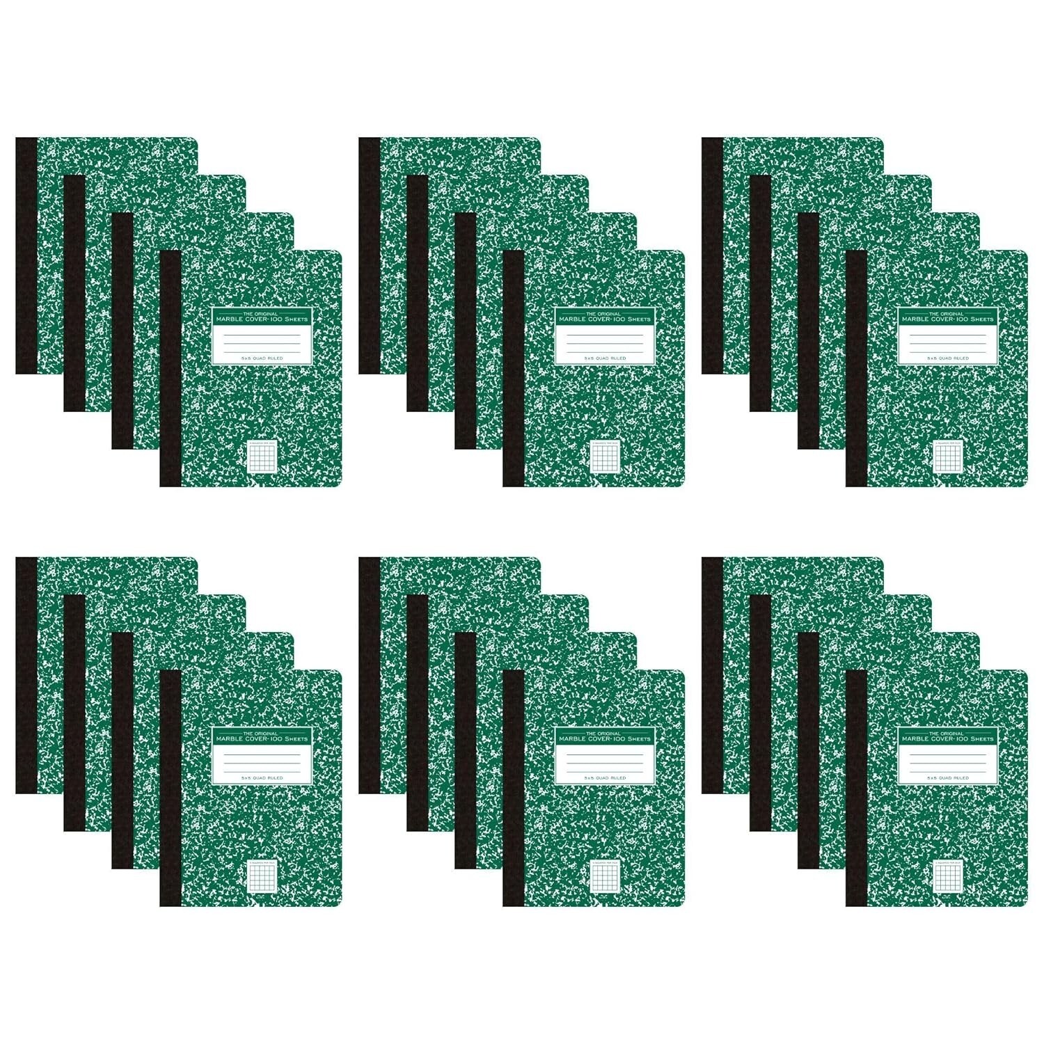 24-Pack 5x5 Graph Ruled Composition Notebooks, Durable Green Marble Cover