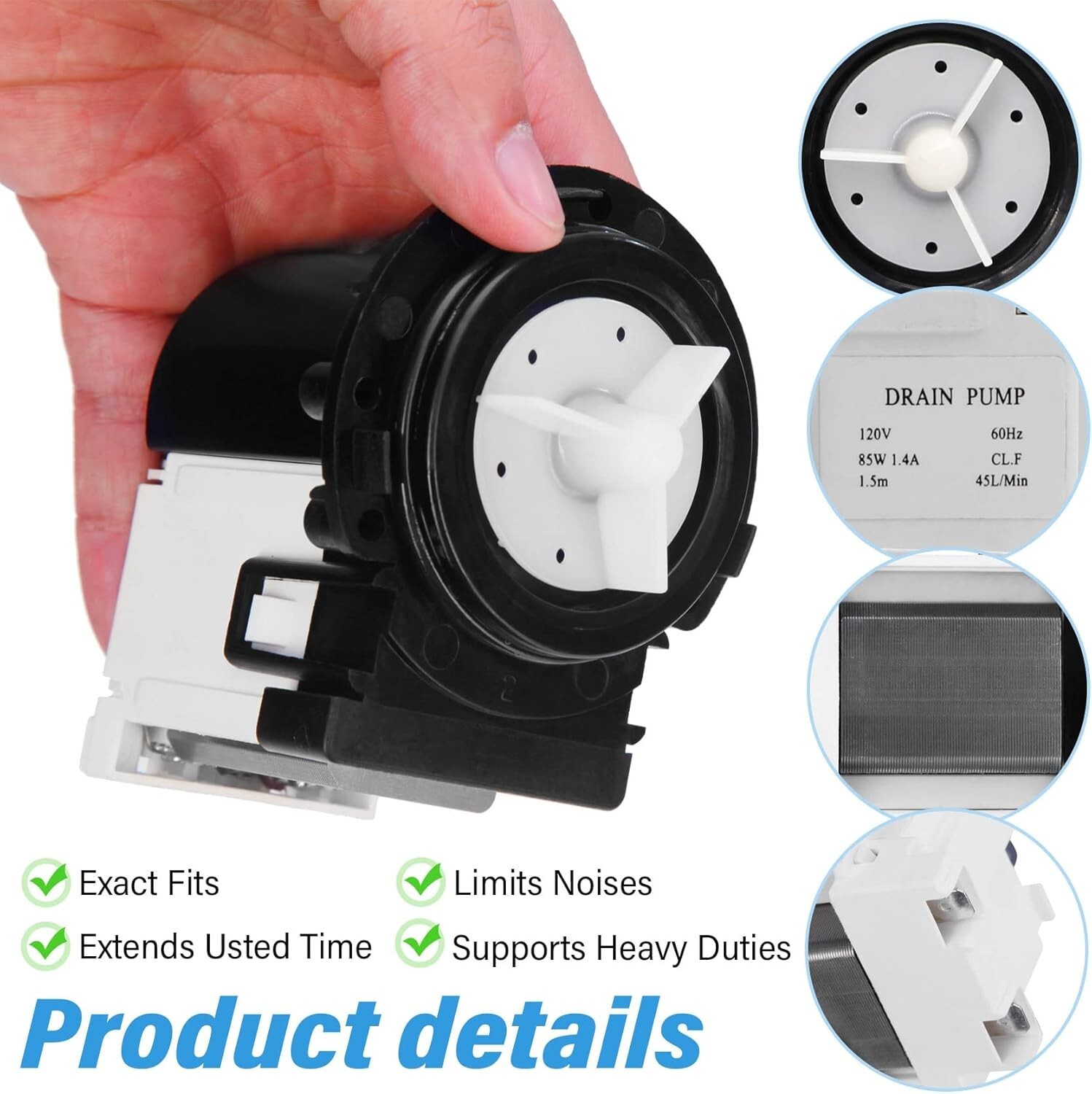 **Flow Rate:** 45L/min, providing efficient drainage for your washing machine.