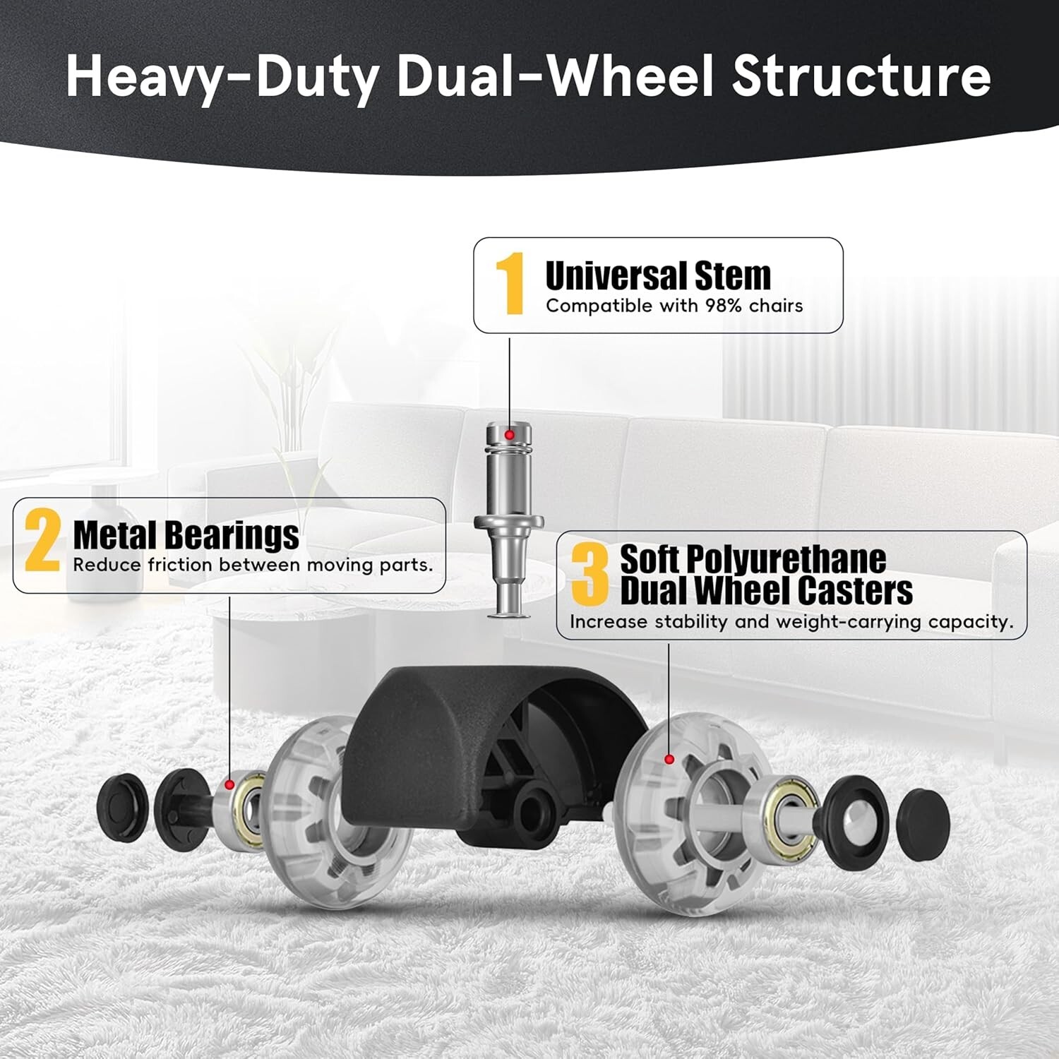 Make the upgrade that benefits both your comfort and your workspace aesthetics. Say goodbye to noisy, unstable wheels and hello to a smoother, quieter workday. Order your Premium Office Chair Caster Wheels today for the ultimate combination of style, efficiency, and protection!