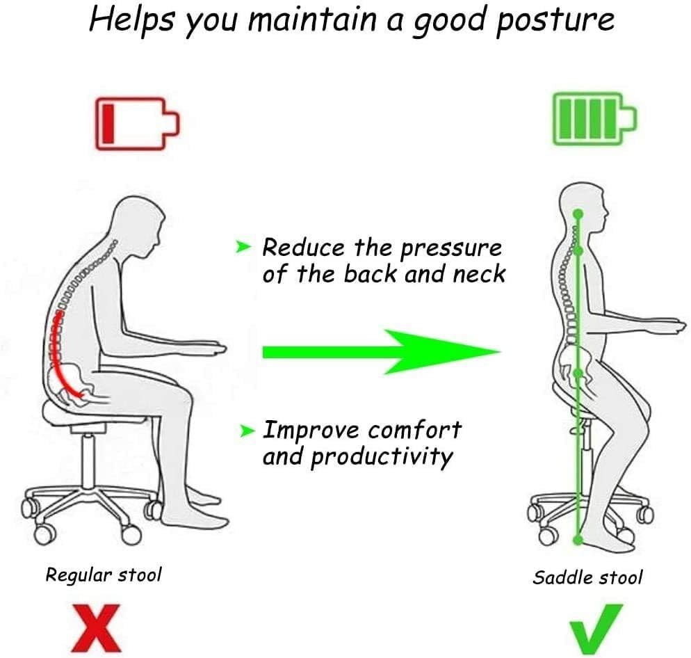 Ergonomic Design: This saddle stool is crafted for exceptional comfort, reducing pressure on your back and spine.