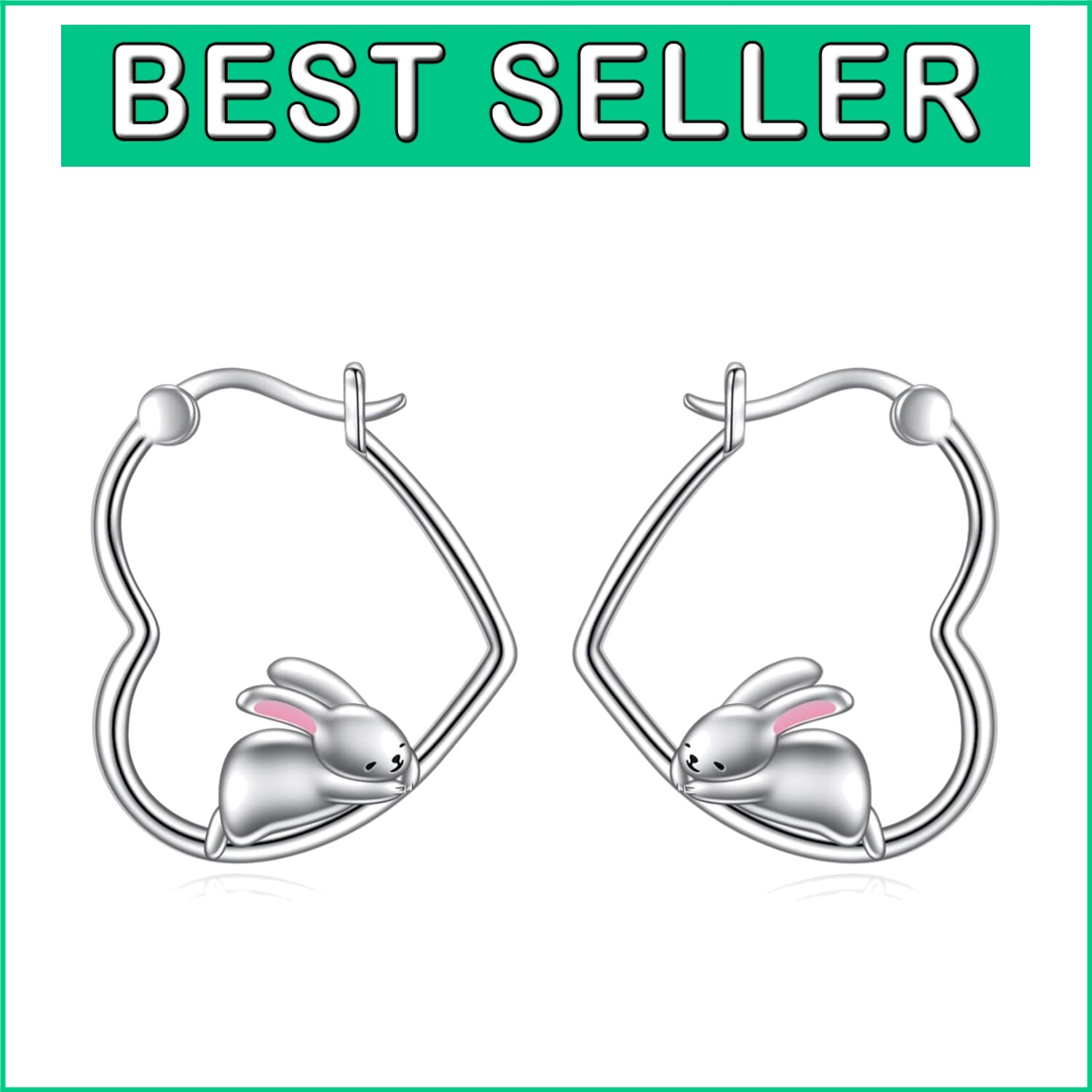 Whimsical Sterling Silver Rabbit Hoops - Hypoallergenic Cute Jewelry for Her