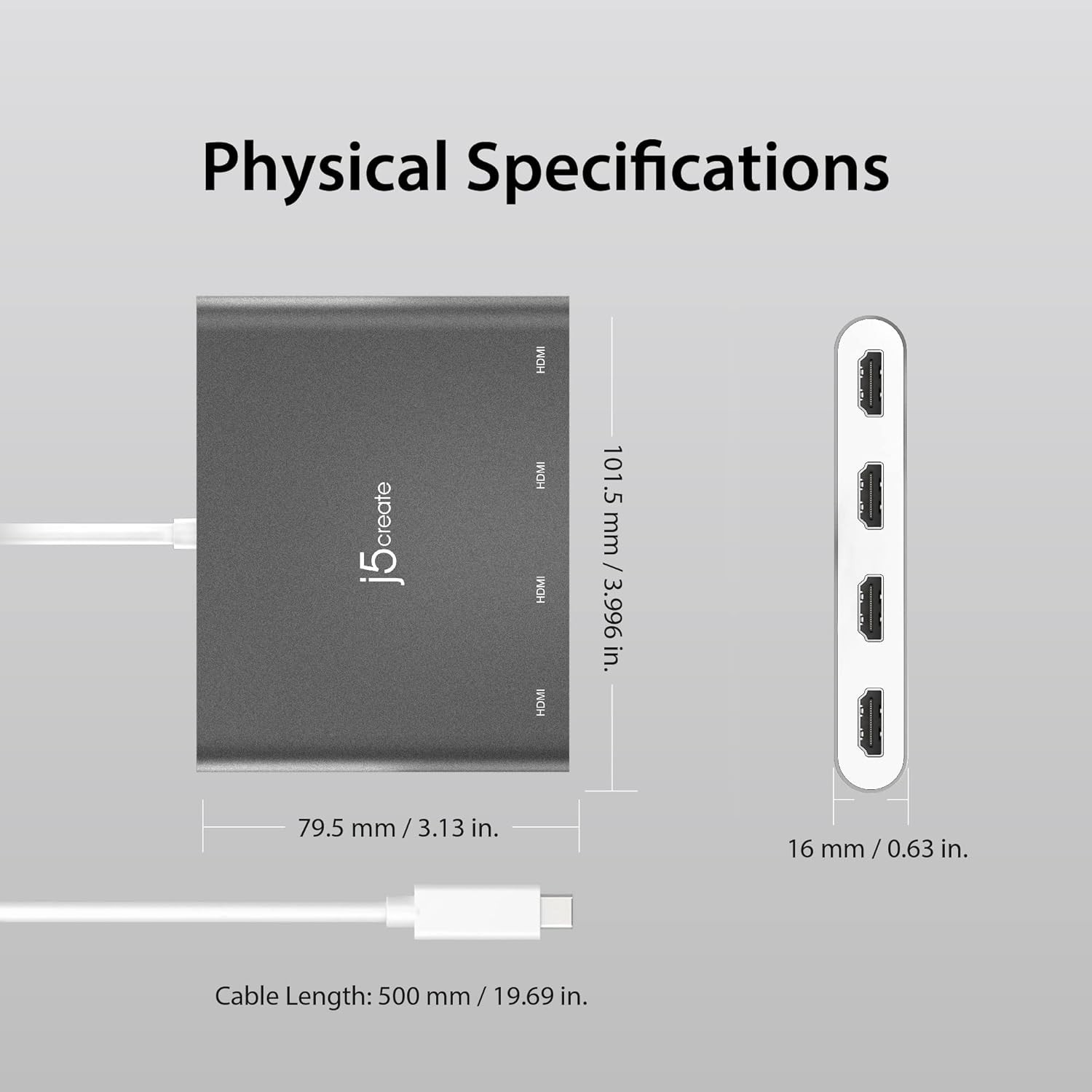 USB-C to 4-Port HDMI Adapter Hub: Boost Productivity with Multi-Monitor Support