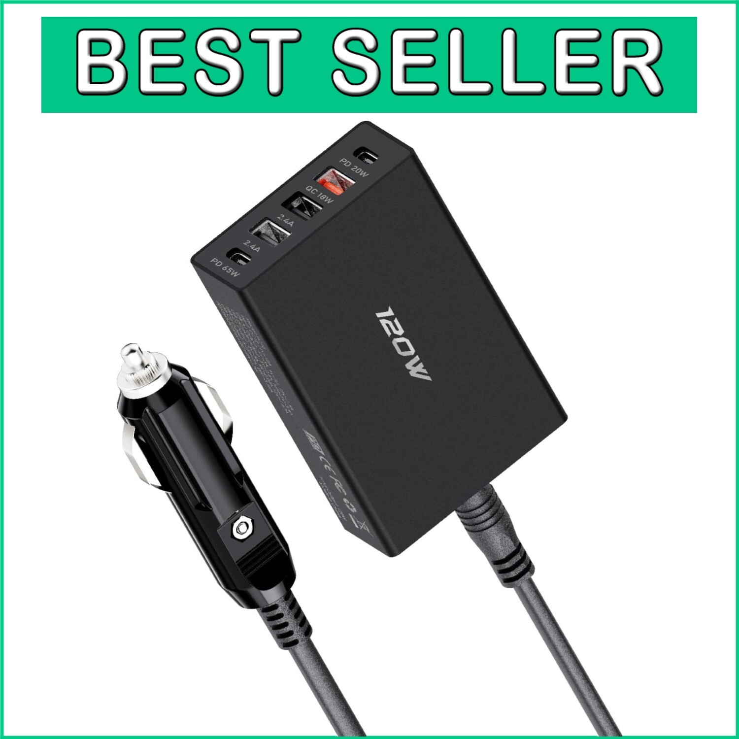 Versatile 5-Ports USB C Car Charger 120W - Fast Charging for All Devices