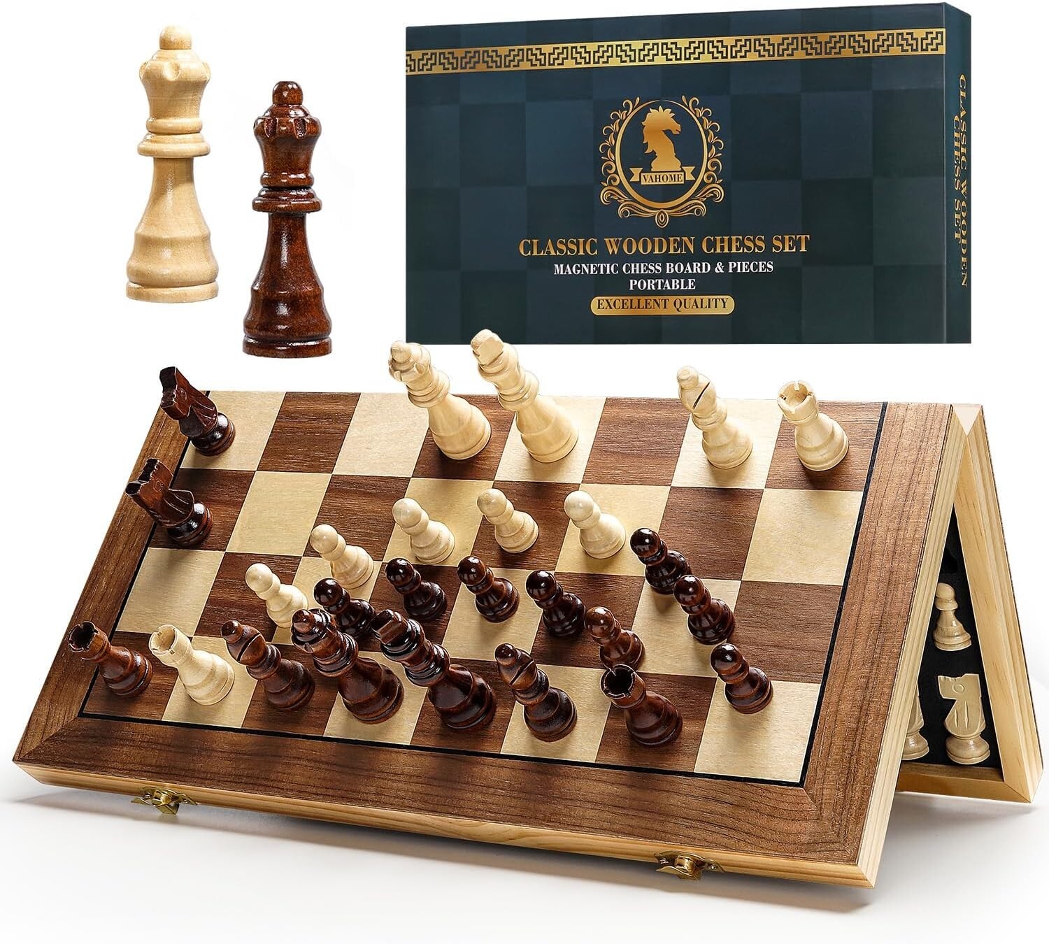 High-Quality 15" Wooden Magnetic Chess Set - Ideal Gift for Family Game Night