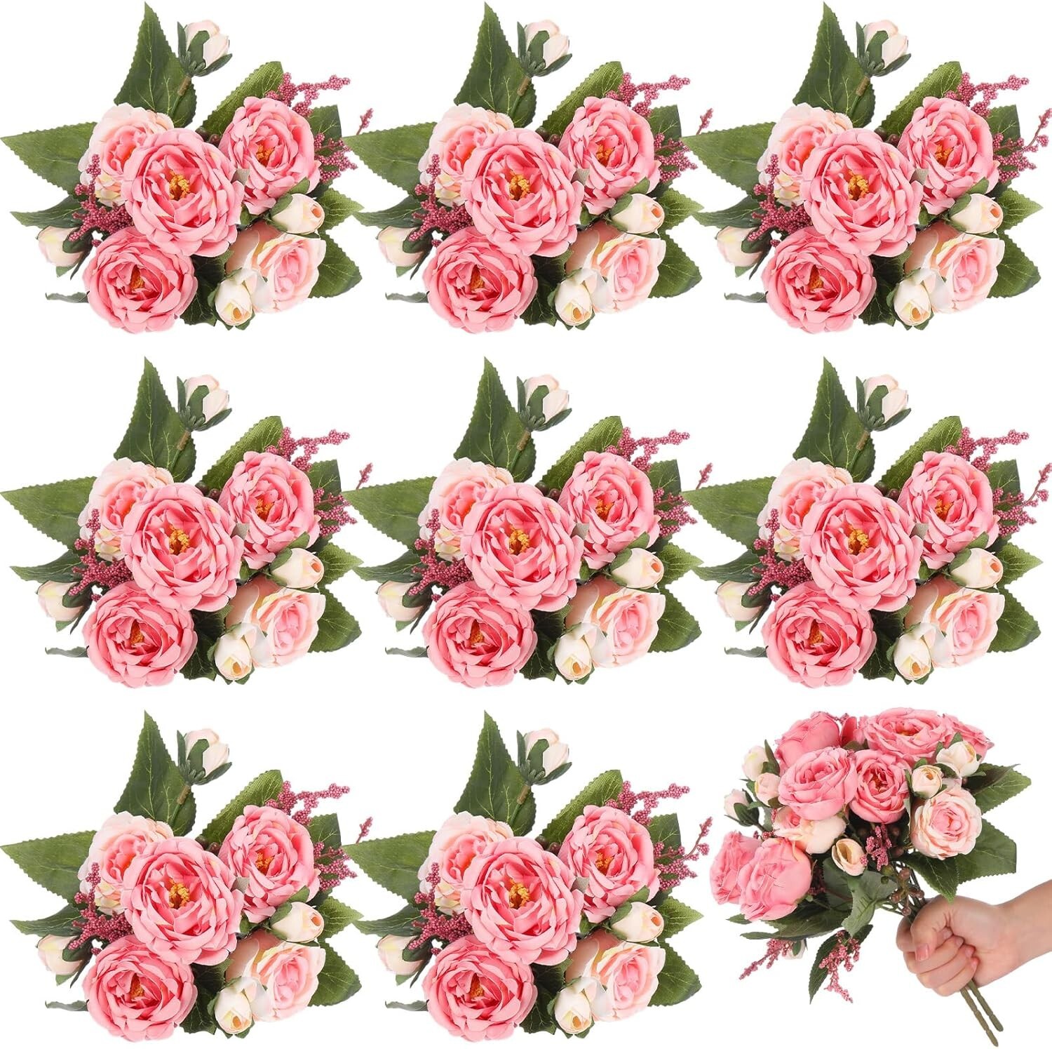 Lush 8 Bundles of Realistic Peonies - Enhance Any Spring Decor Effortlessly