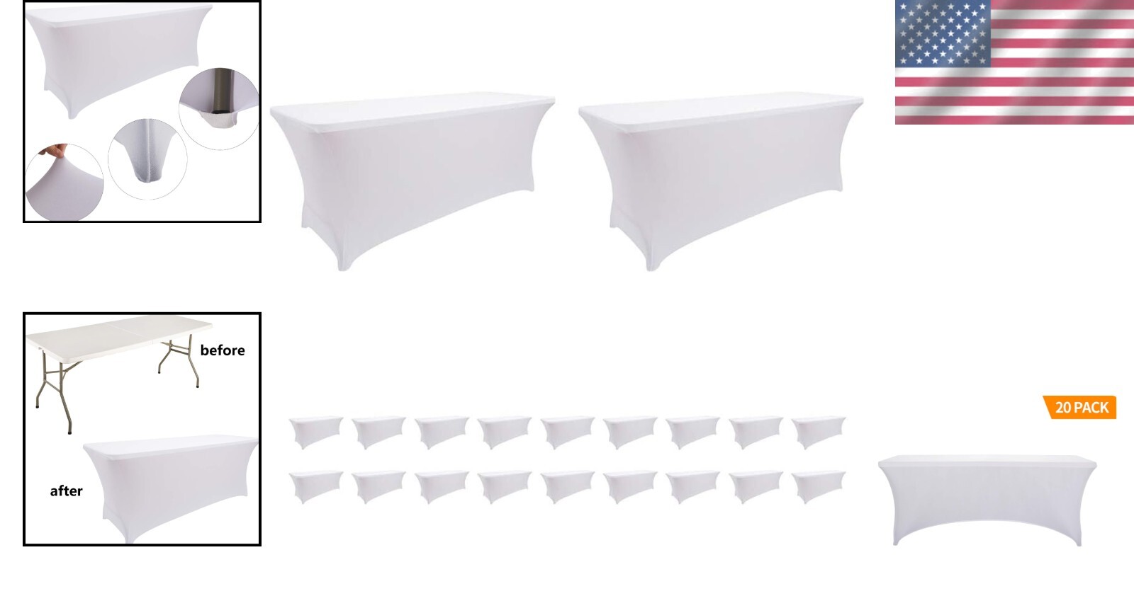 White Spandex 6ft Table Covers - 20pcs, Modern Style for Weddings and Events