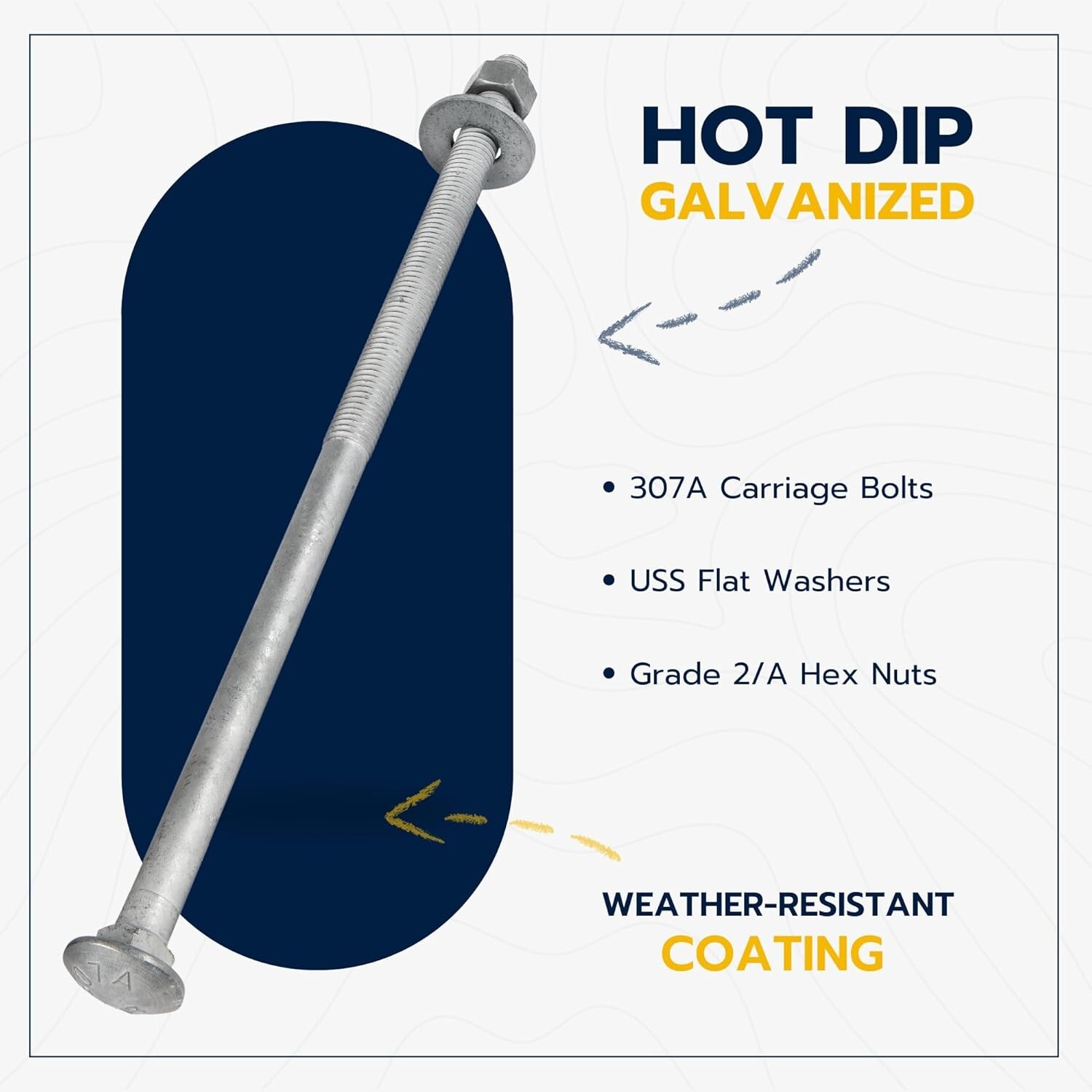1/2" x 16" Heavy-Duty Carriage Bolt Kit - Galvanized with 25 Washers & Nuts