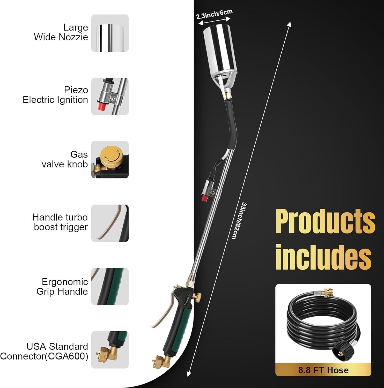 This Propane Weed Torch brings unparalleled power and versatility to your gardening and outdoor projects. With its robust flame control and exceptional safety features, you'll enjoy ease of use and peace of mind. Discover the eco-friendly benefits of chemical-free weeding while ensuring a safe and healthy environment for your loved ones.