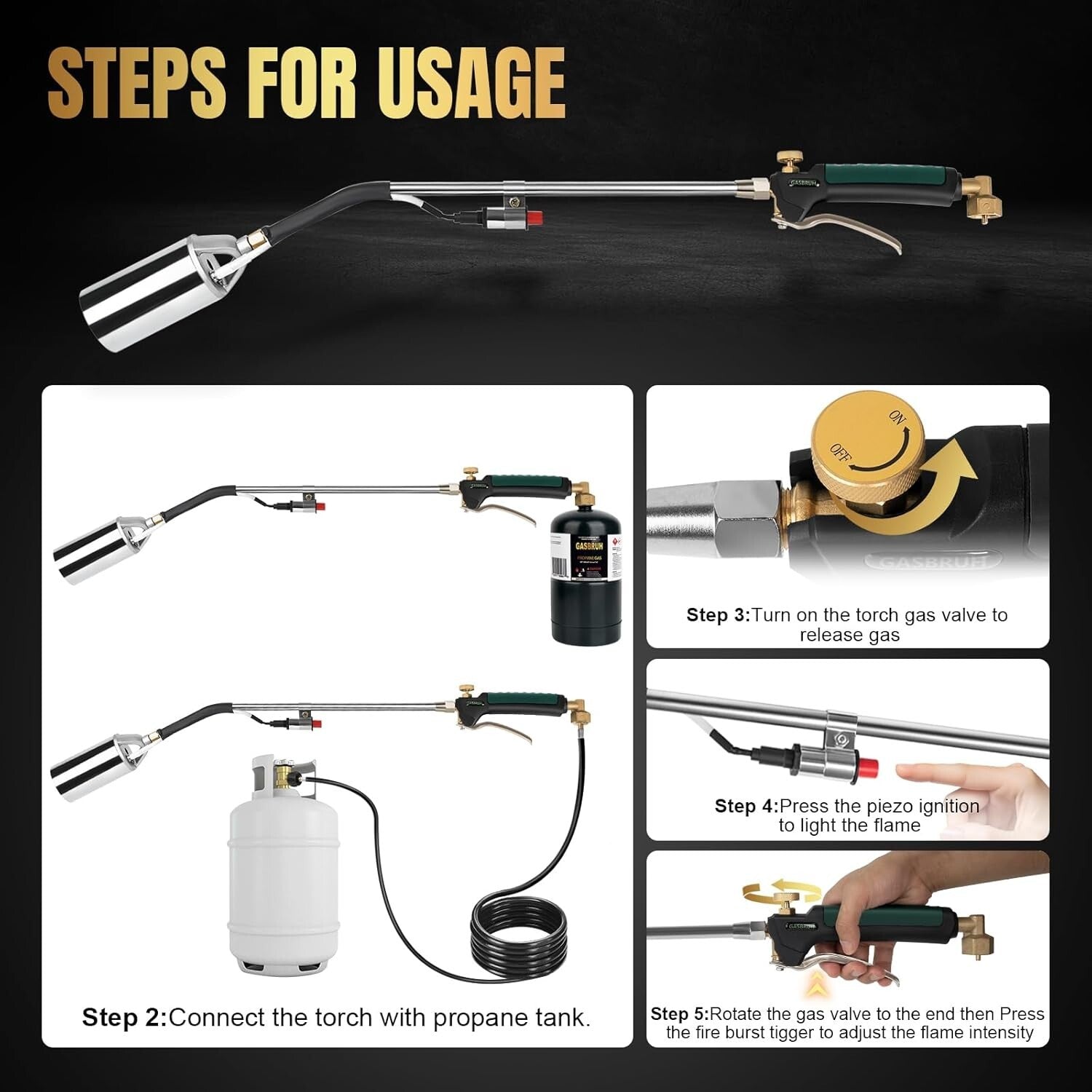 1,200,000 BTU Propane Weed Torch Kit with 30-Inch Flame for Eco-Friendly Weeding