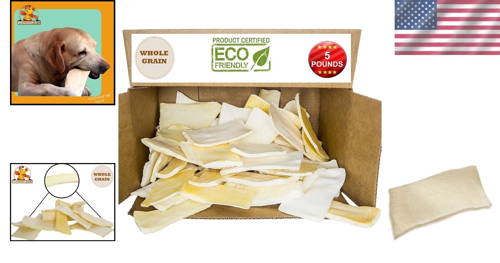 Unit Quantity: 5 pounds Brand: Unbranded Type: Rawhide Main Ingredient: Beef
