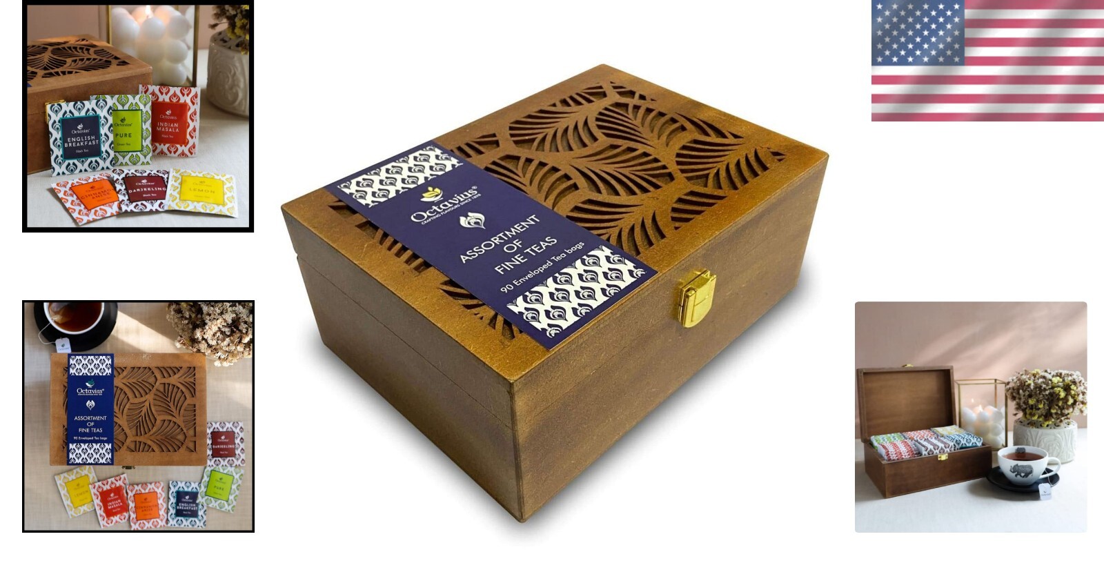 6 Flavors of Black & Green Tea in Leafcut Design Box - Perfect Gift Idea