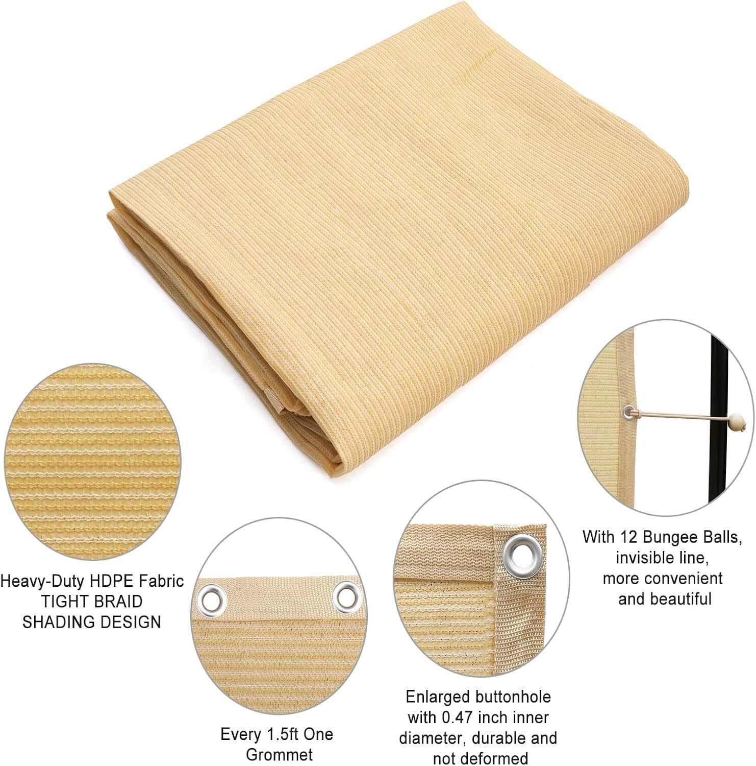 • Generous Size: Measuring 6 ft in width and 16 ft in length, this shade fabric is accompanied by 12 Bungee Balls for secure attachment. Additional bungee balls are available in our store.
