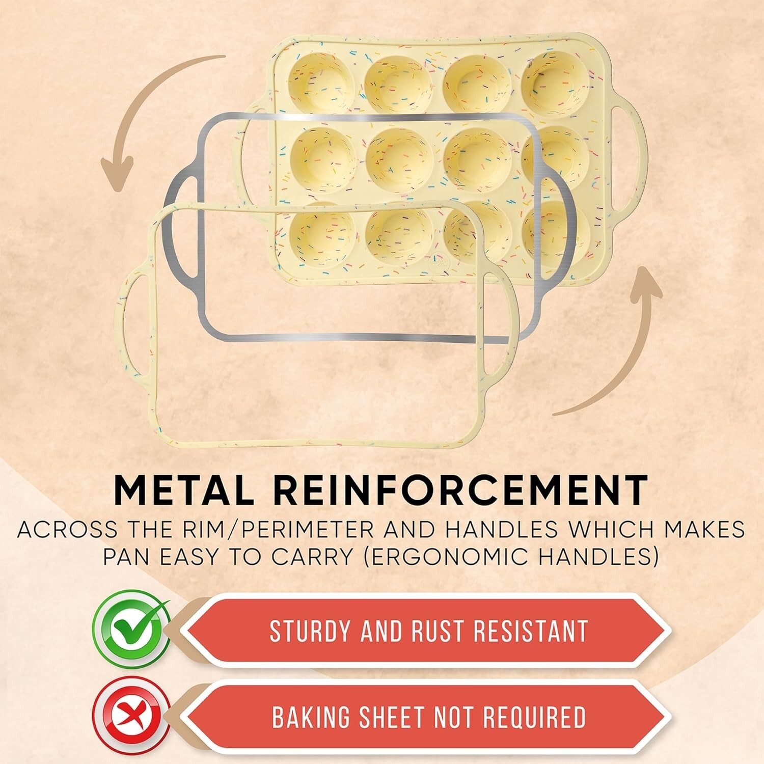Experience the elegance of a reinforced cupcake pan that offers exceptional stability while ensuring easy maneuverability. With its ergonomic grip and reliable design, carry your creations without fear of spills or mishaps.