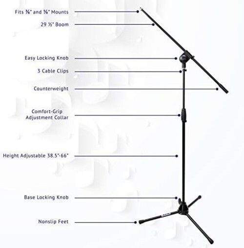 Durable Foldable Microphone Stand Boom Arm with Height Adjustment 38.5"-66"