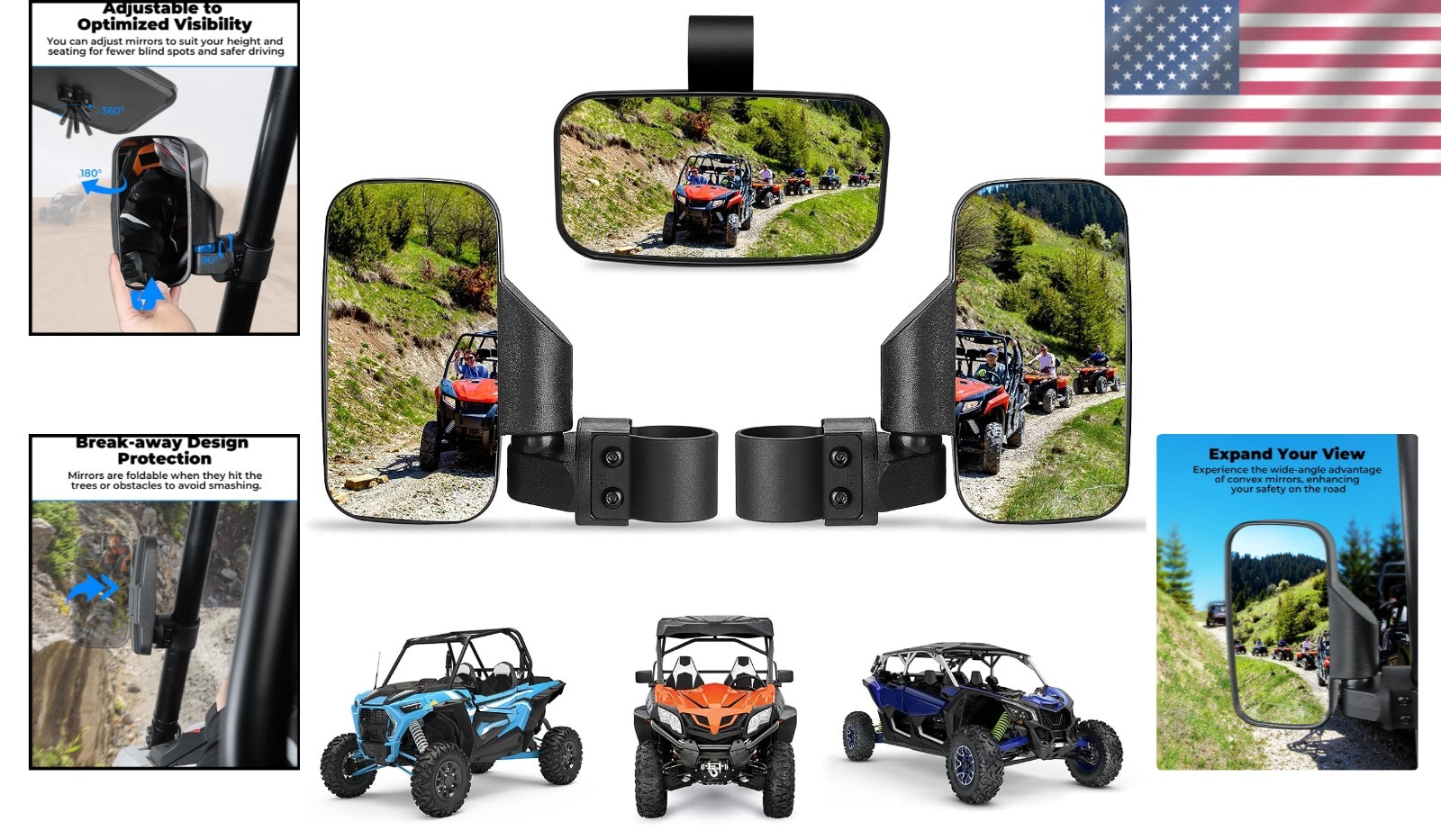 Sleek Convex UTV Mirrors - Adjustable Side & Center Combo for Enhanced Safety