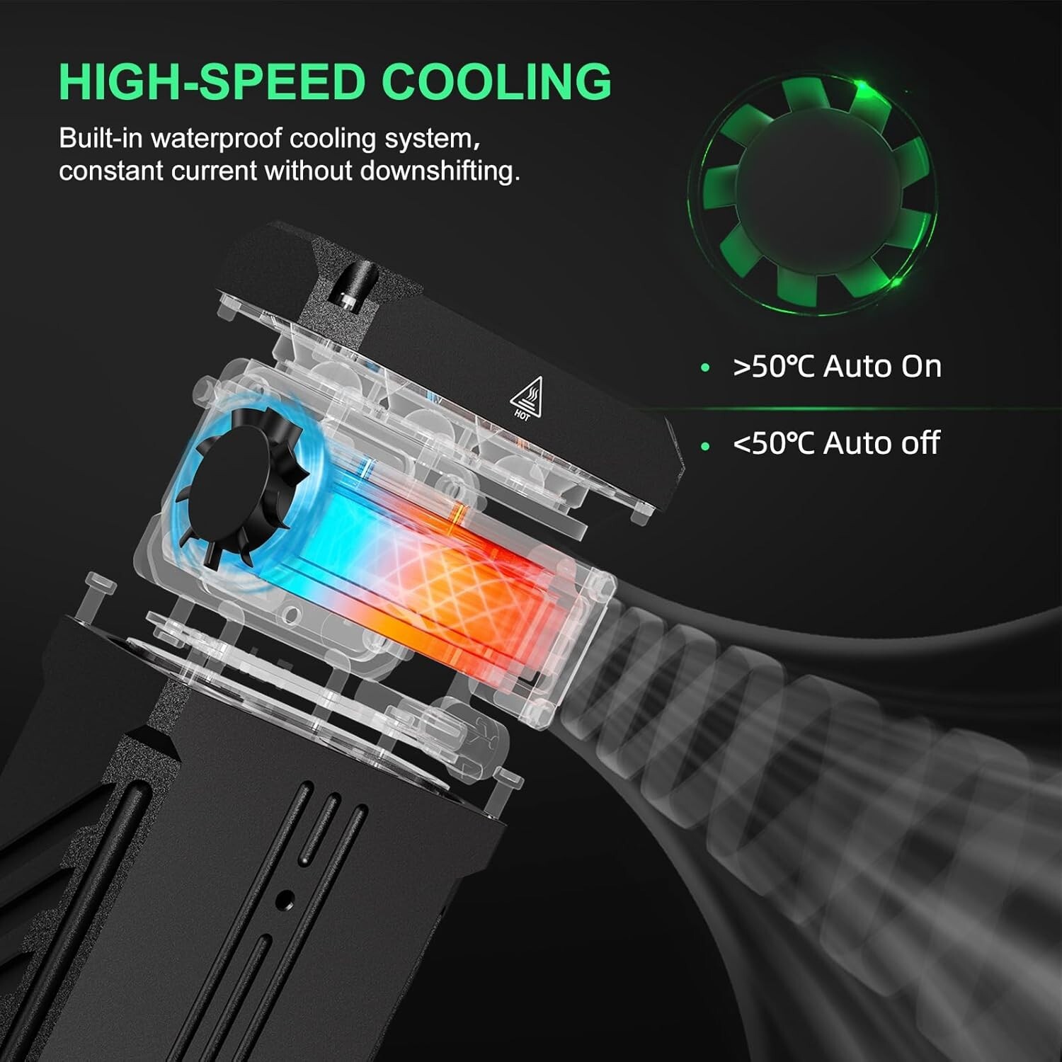 High-Speed Cooling System: A built-in waterproof fan and active heat dissipation technology guarantee optimal performance without downshifting, even during prolonged use.