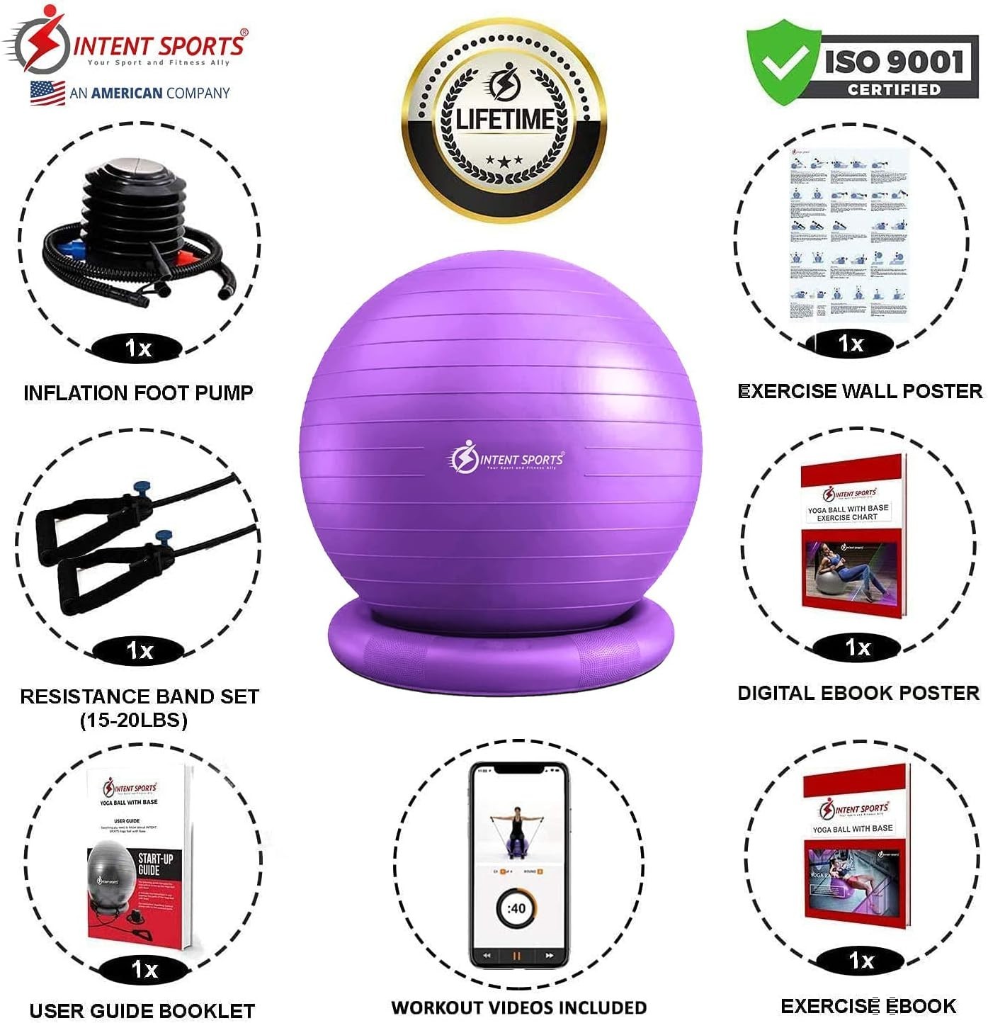 Yoga Ball Chair with Stability Base & Resistance Bands